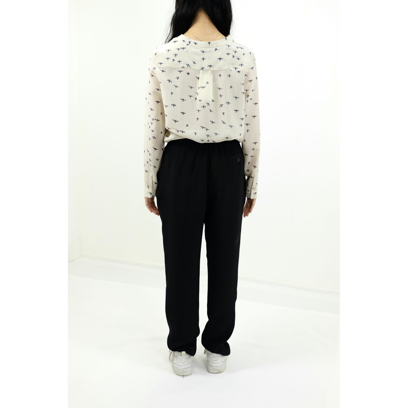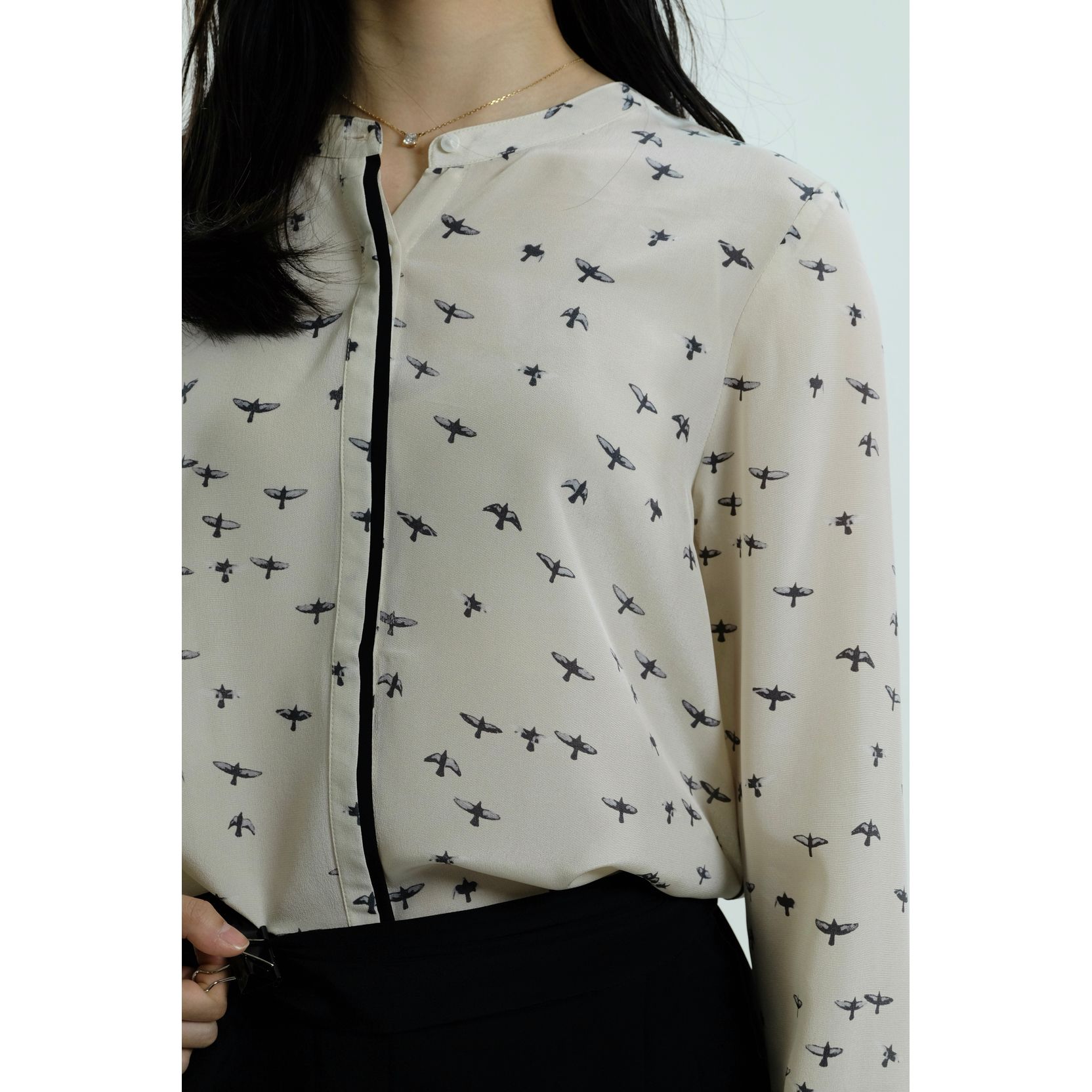 女裝真絲長袖印花恤衫,特色圖案, 前中有撞色邊,前中及袖口扣鈕,,柔軟舒適,上班或休閑穿着也宜。Free size