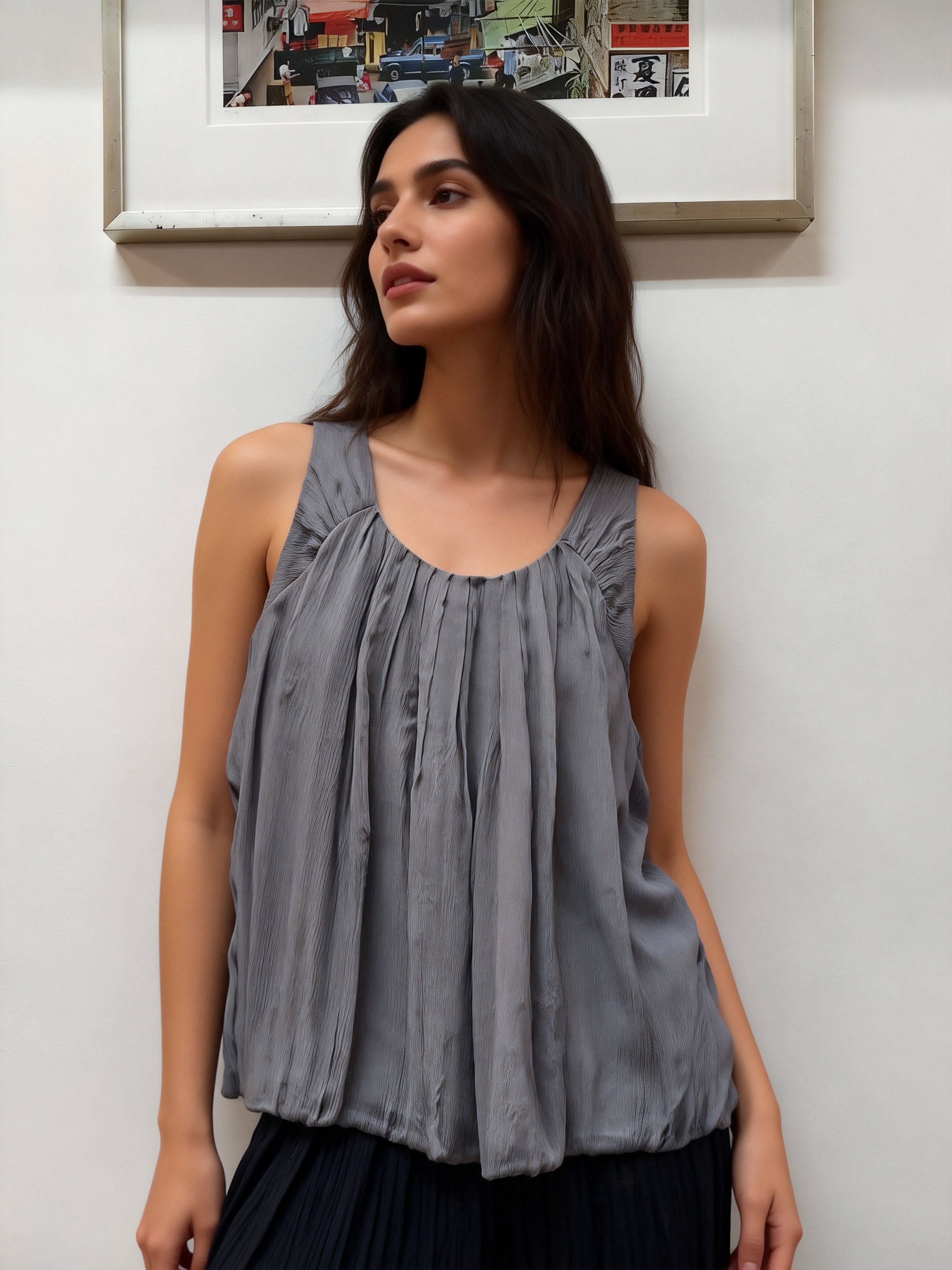LADIES CRINKLE SILK VEST TOP 女裝真絲背心上衣 (HSS1199)