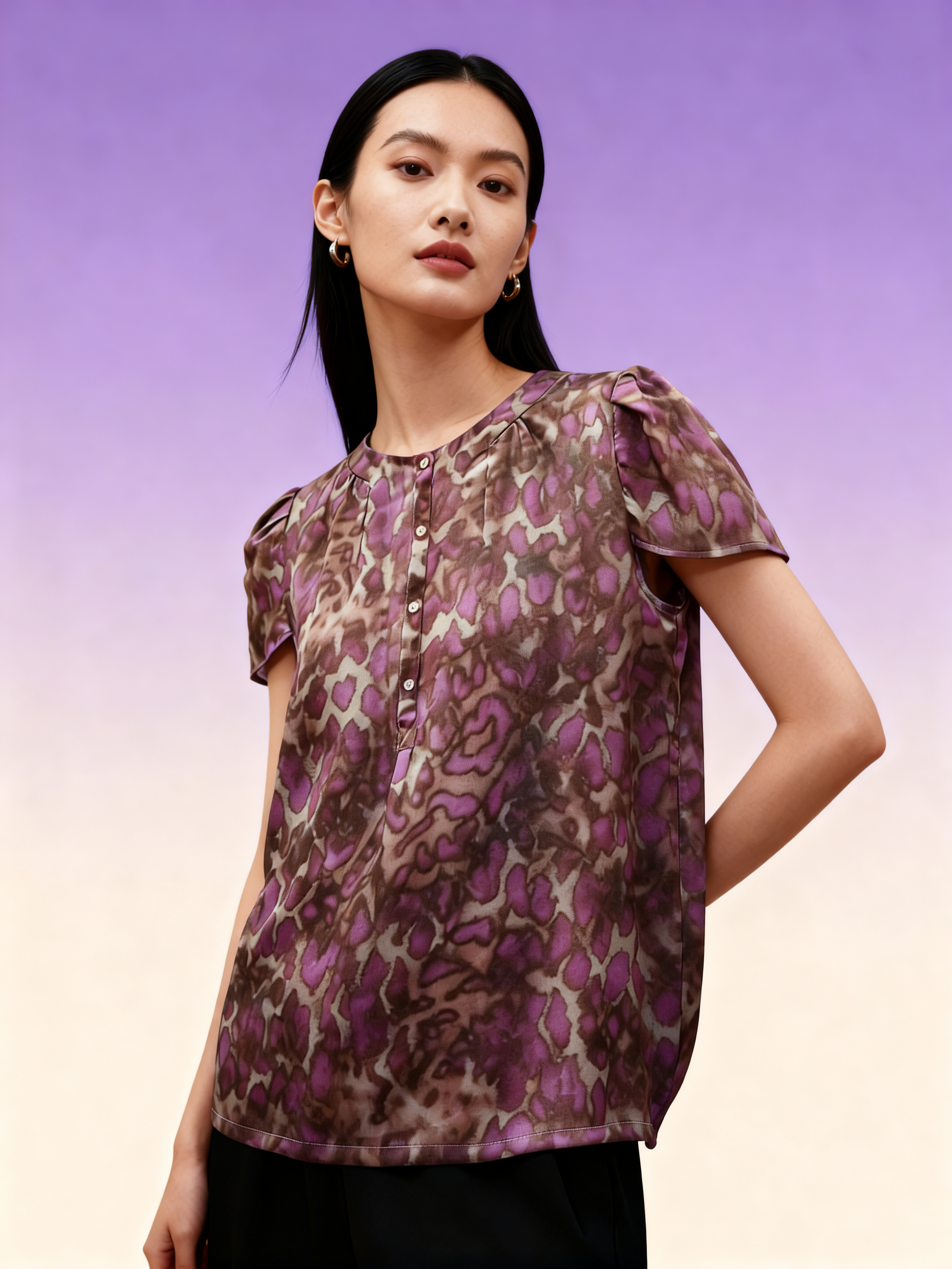 LADIES PRINTED SILK BLOUSE 女裝印花真絲恤衫 (HSS1205)
