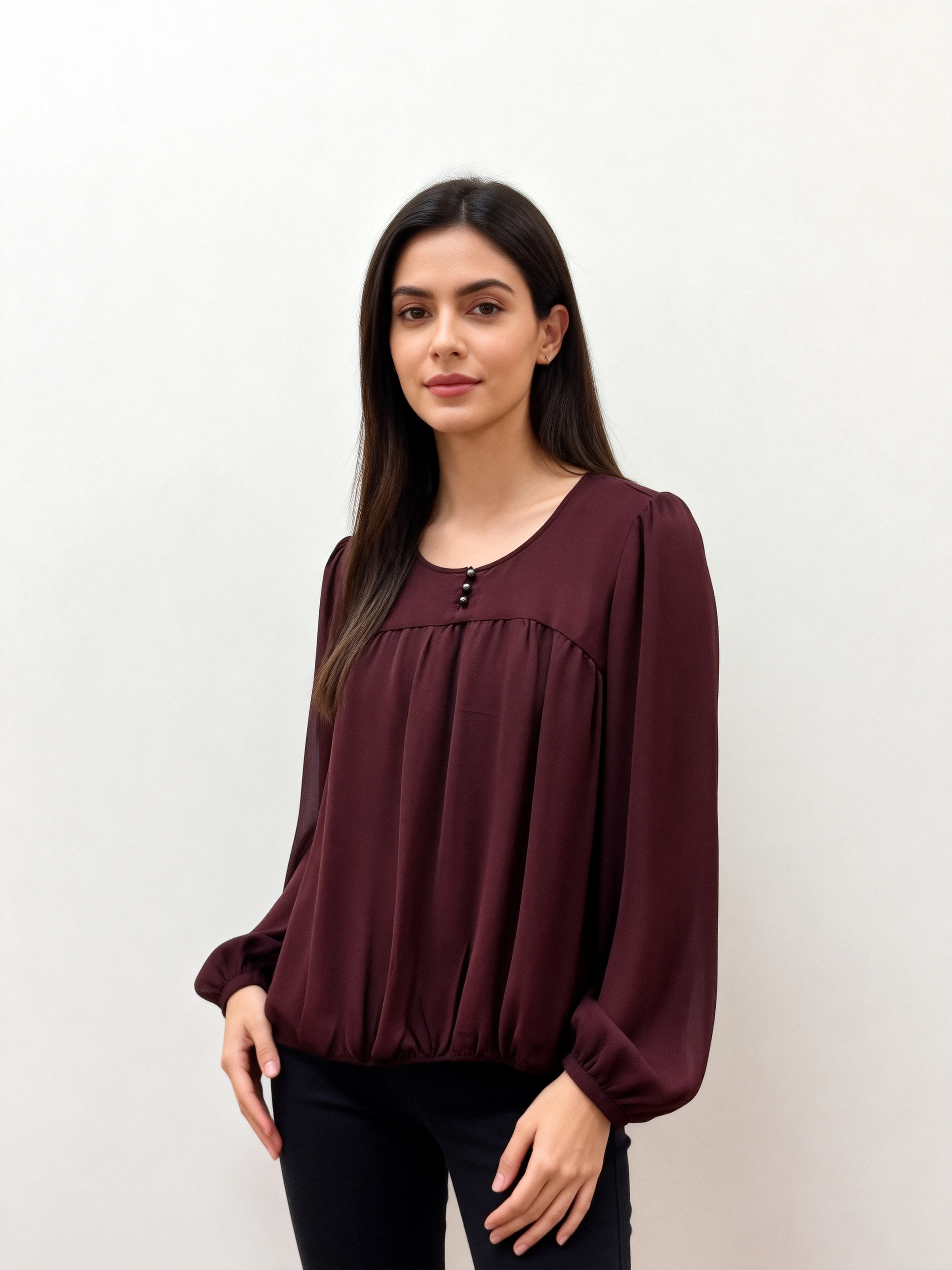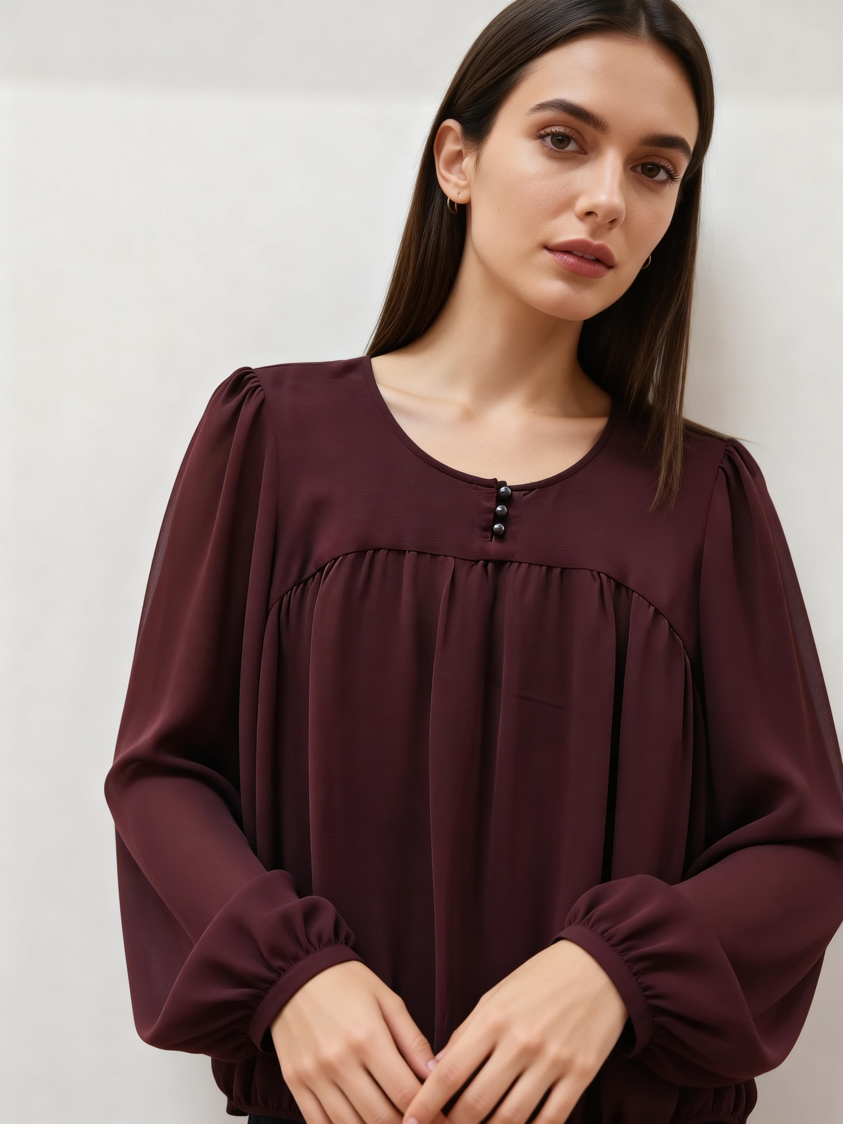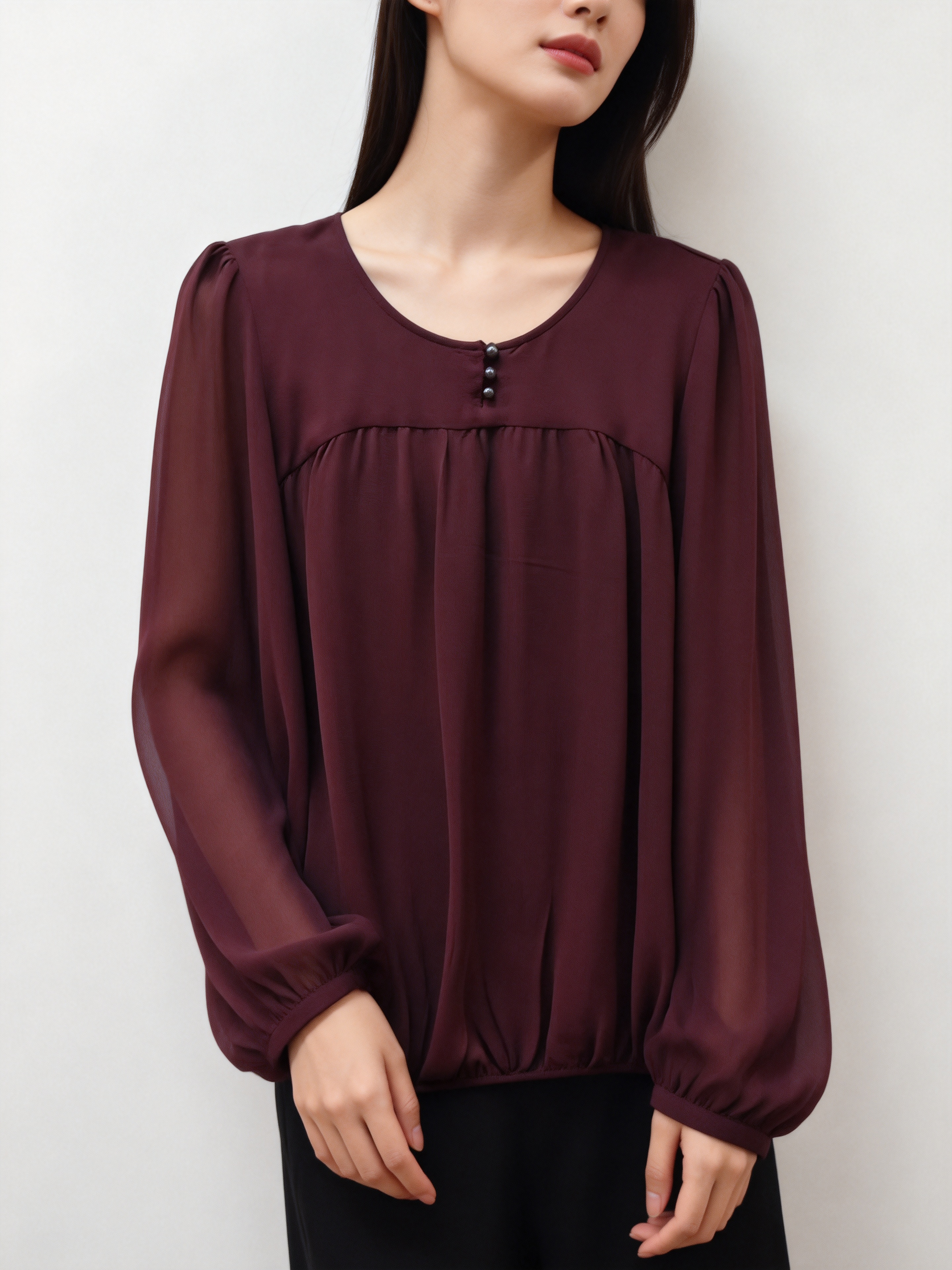 100% Silk round neck long sleeves blouse 真絲圓領長袖恤衫襯衫