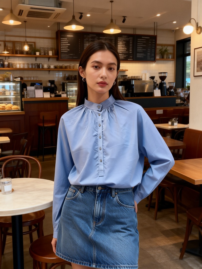 100% Silk small stand-collar long sleeves button up shirt with MOP buttons 真絲小企領長袖開胸恤衫襯衫配真殼鈕