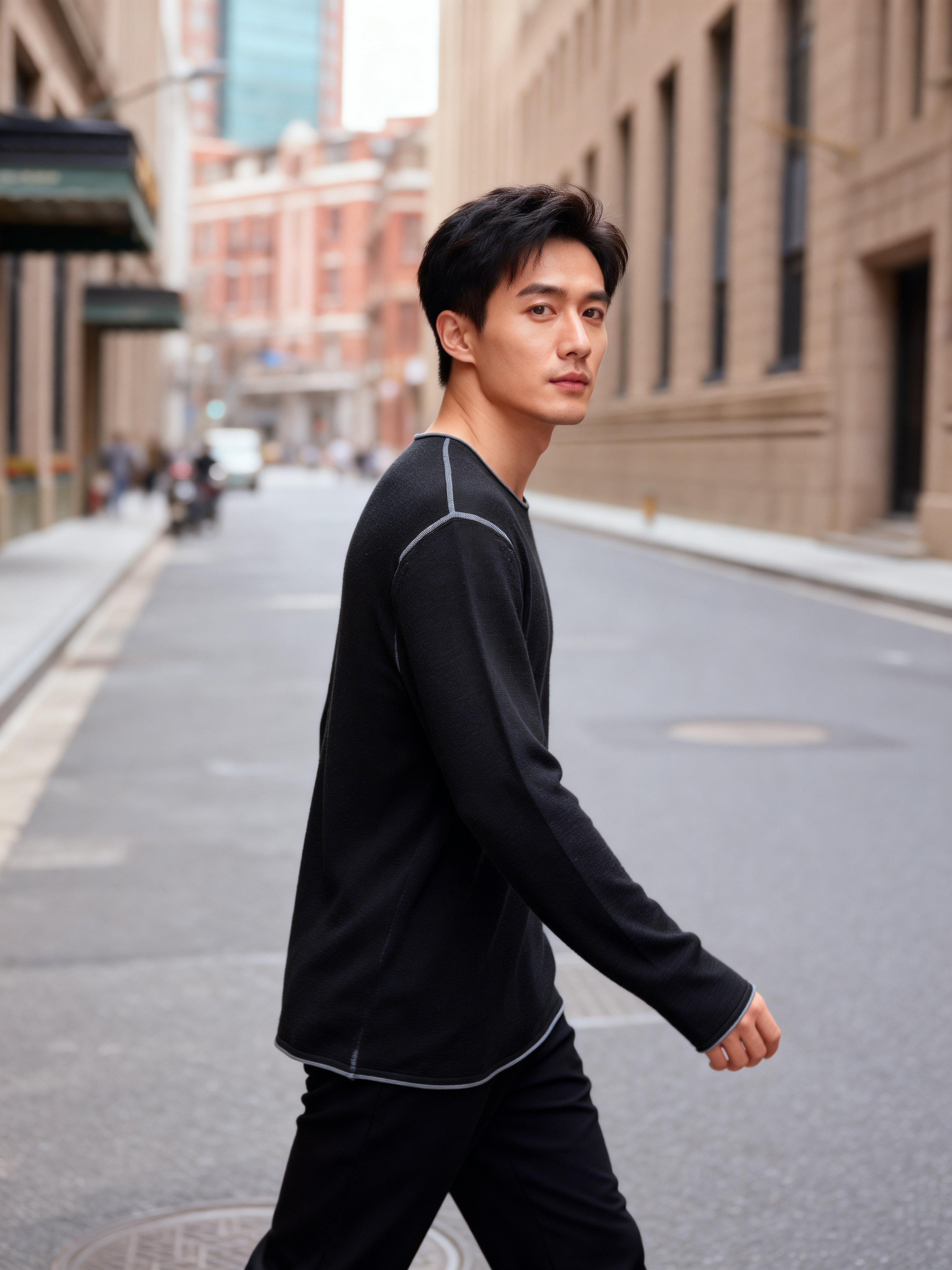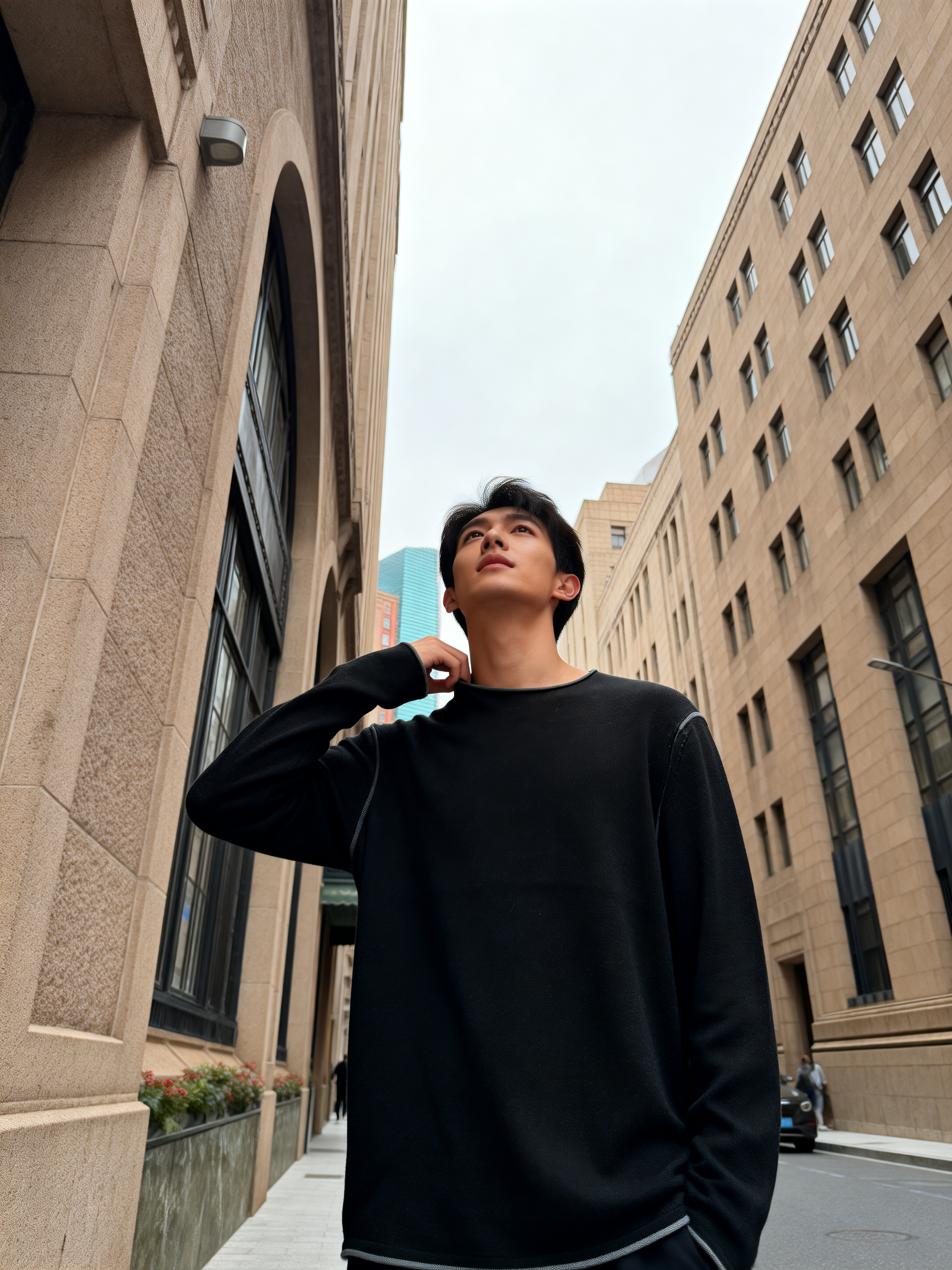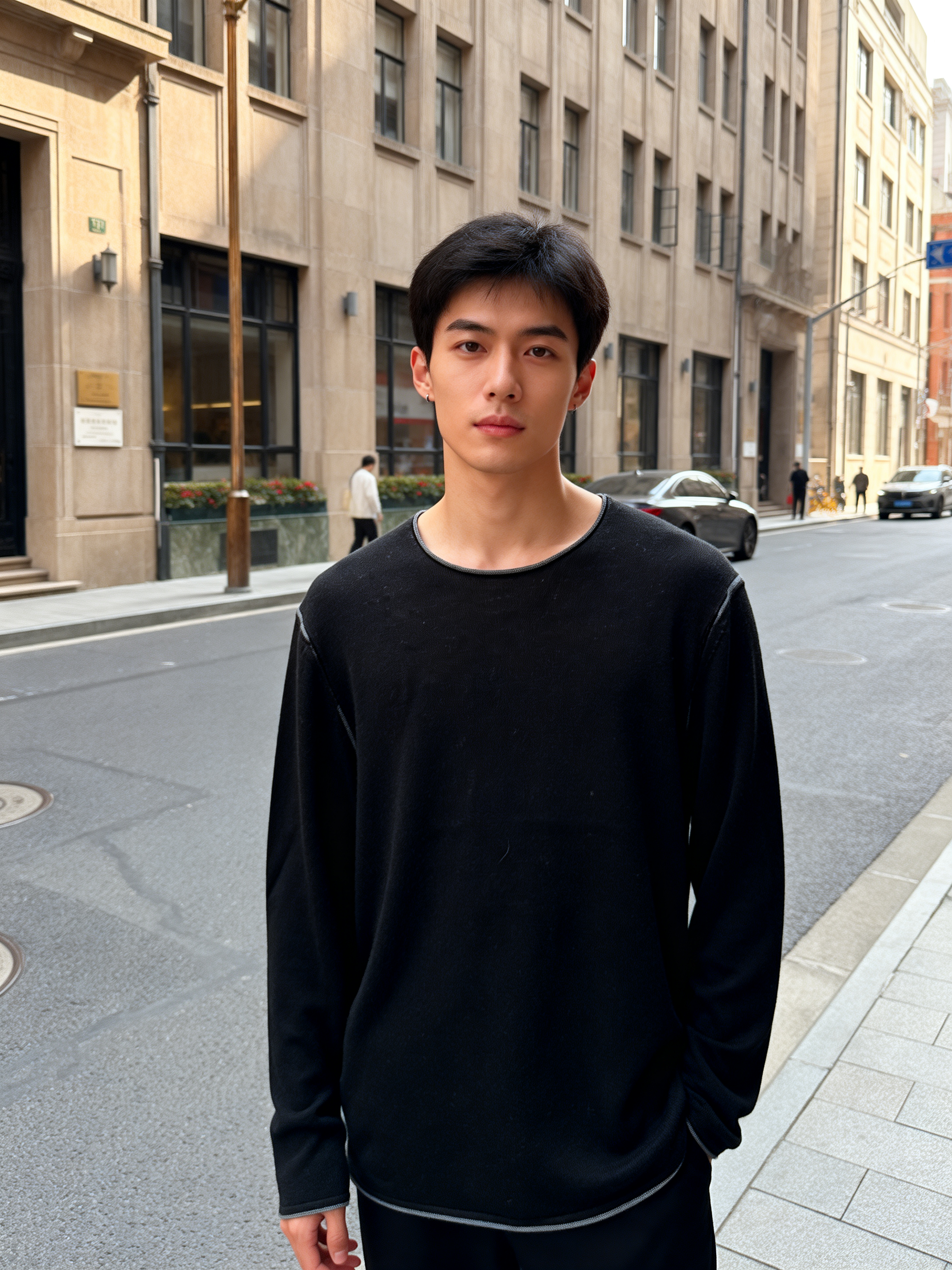 Crafted for the modern minimalist, this black crewneck longsleeve blends timeless design with everyday comfort. The classic crew neckline offers a clean, versatile silhouette, while the relaxed fit ensures unrestricted movement—perfect for city strolls or casual outings. 95% WOOL 5% CASHMERE